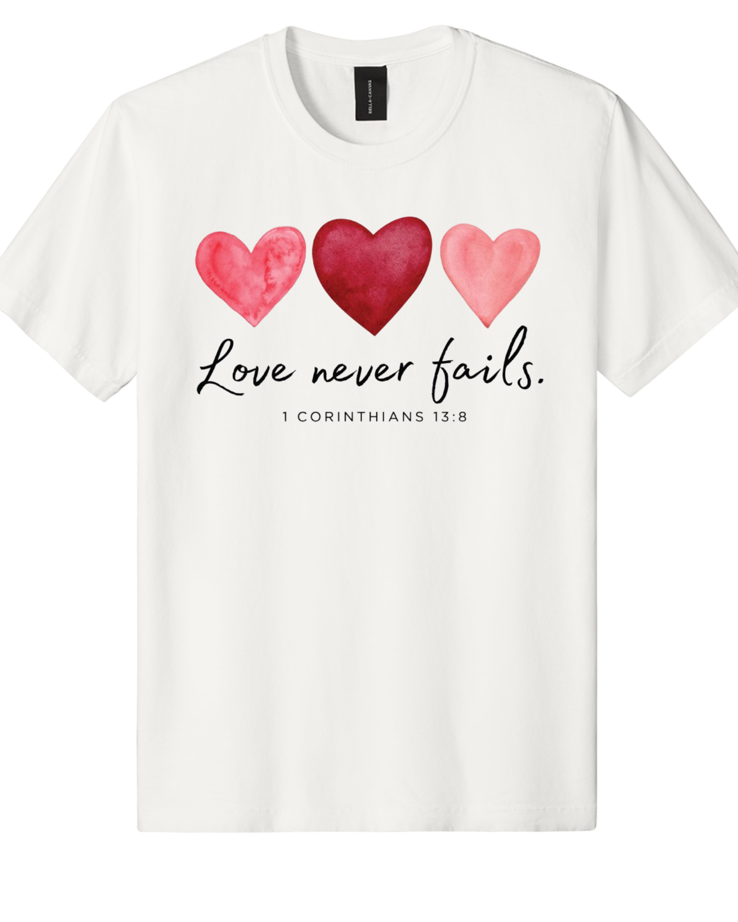 Soft, sweet, and full of meaning — our Love Never Fails Sweatshirt is the perfect blend of faith and feminine Valentine charm. Featuring three watercolor-style hearts in romantic pink tones and the timeless scripture 1 Corinthians 13:8, this sweatshirt is a beautiful reminder that love endures all things.